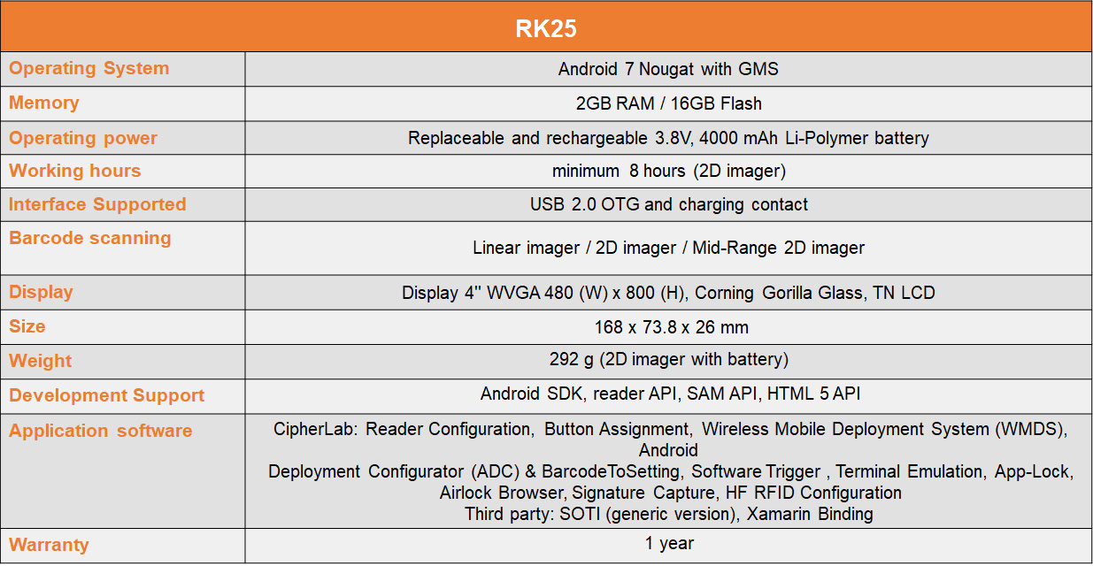 Cipherlab RK25 SeriesRugged Mobile Computercomputers with handheld mobility into one reliable device. those who are used to non-visual data entry operation, working in rugged outdoor conditions, and need custom configured buttons. software empower users to thrive in their daily tasks. |