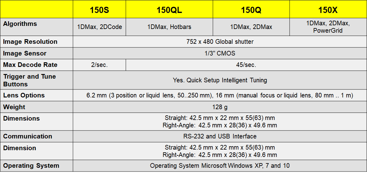 DataMan 150 SeriesBarcode Readersread rates thanks to a high-speed, powerful platform that runs the latest Cognex algorithms. helps to reduce installation time and cost ownership. performance for each application and accommodate future process changes. |
