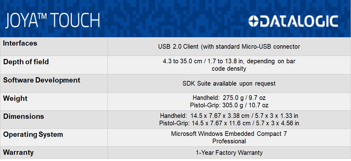 DataLogic Joya™ Touch Specification