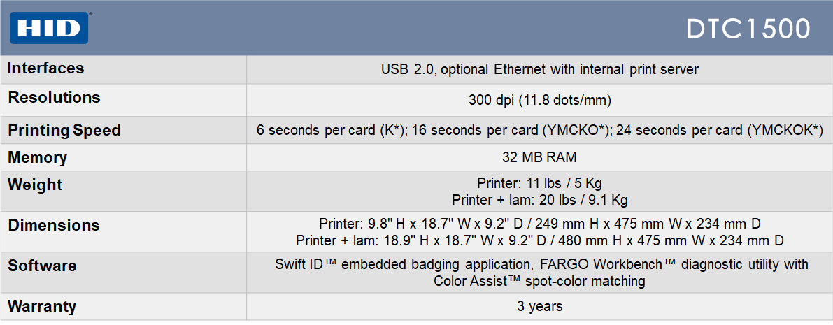 Built on 20 years of proven direct-to-card printing expertise, the HID® FARGO® DTC1500 card printer and encoder offers the convenience and lower cost of high-capacity consumables along with a comprehensive feature set – enabling organizations to routinely issue highly secure cards and IDs at a fraction of the cost without sacrificing quality.