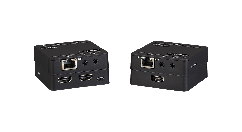 sends full HD 1080p/60 HDMI signals over CAT5/5e cable up to 164ft. (50m) confidence monitor. For control, the extender set can send/ receive IR signals from each other over CAT5/5e cable with IR pass-through. |