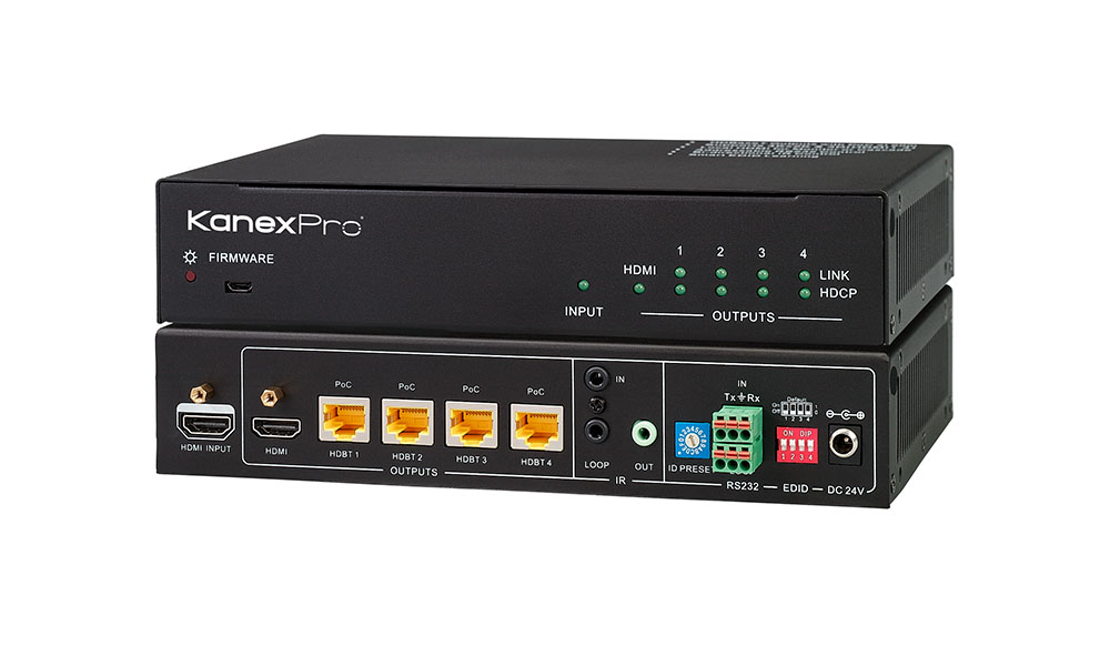 KanexPro 4K HDBaseT™ 1x4 Distribution Amplifier up to 230 feet (70m) Features