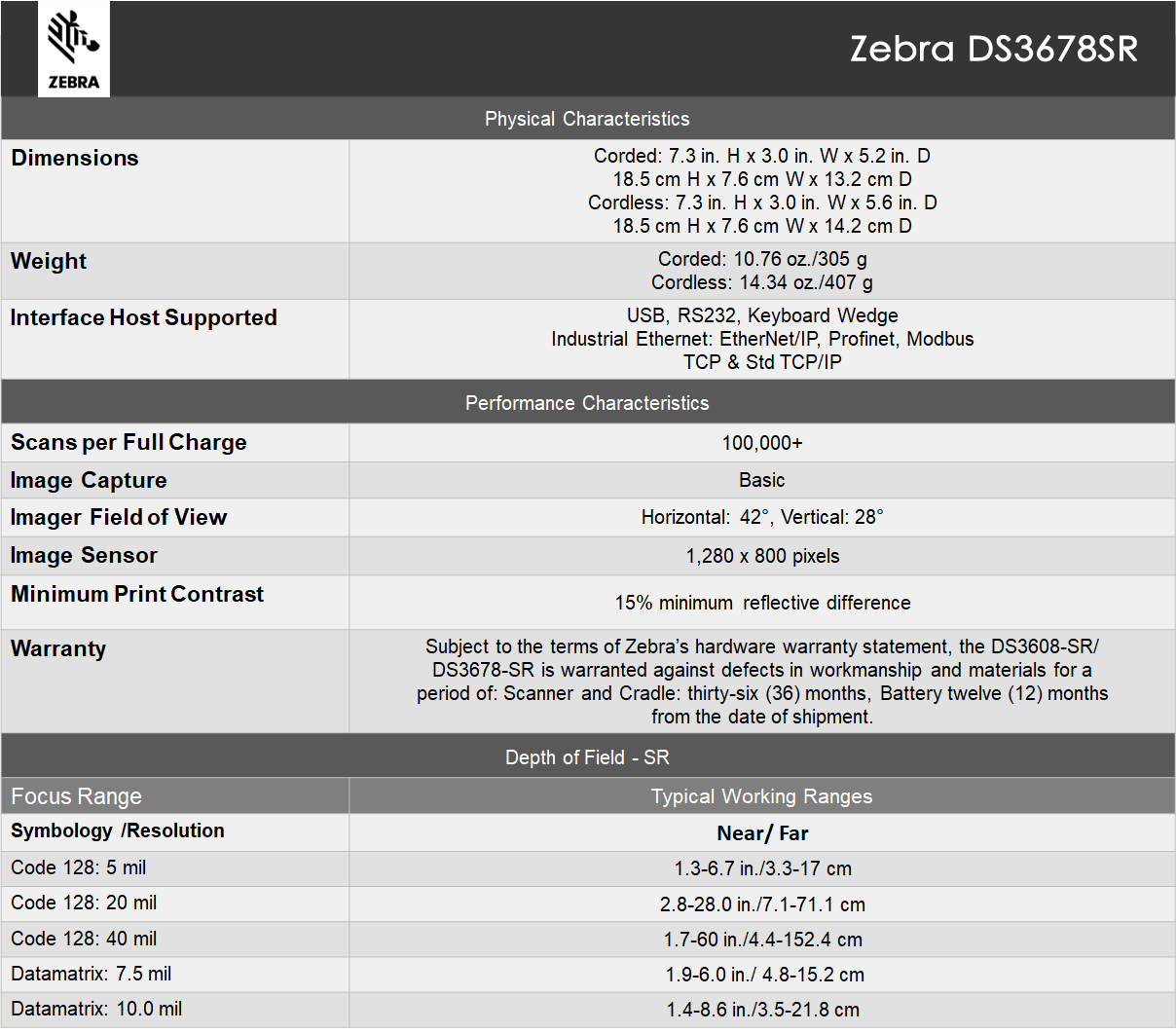 Zebra DS3678SR Ultra-Rugged Scanner Specification